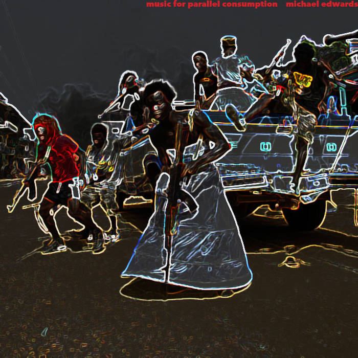 Composed in 2010 but not released until some final polish was applied in 2015, Music for Parallel Consumption is a 4-channel digital composition made for delivery and playback via a custom computer app. The title refers only partially ironically to the tendency to consume music as part of a backdrop to our otherwise-engaged lives. At the same time as offering an alternative to this mode of consumption (((the details, the details!))) the very nature of the piece's construction and delivery strategy invites similar disregard. Not intended for concert performance, the app format almost encourages you to set and forget: choose your output mode, set the level, hit play, and let it run for as long as you like. Such contradictions are further inherent in the the polarity of the meditative quality of much of the music and the album artwork—war being the ultimate consumptive impulse.